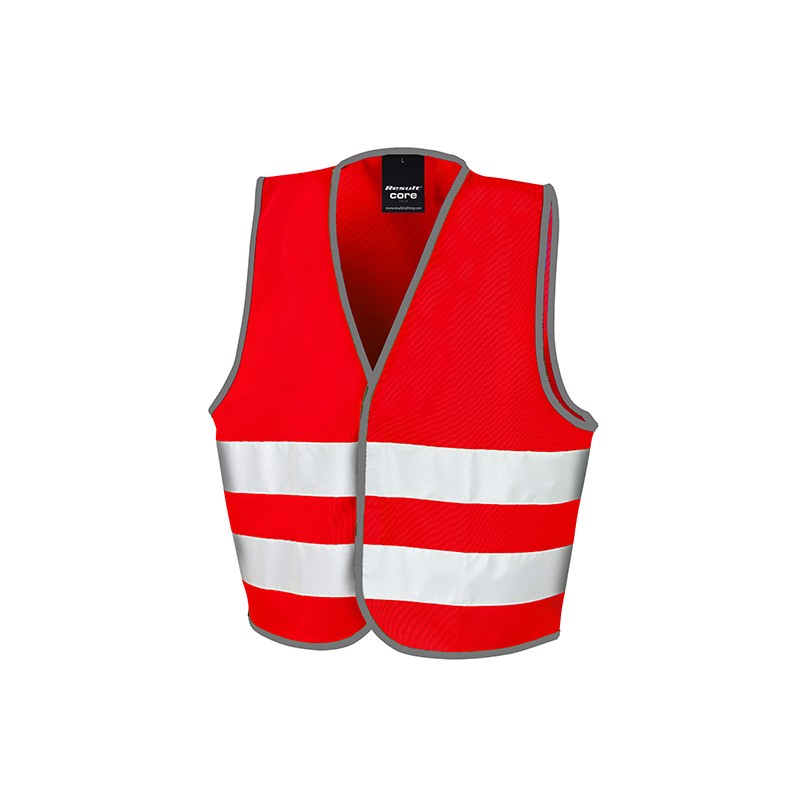 Remarque: Ce vêtement doit être porté bien attaché et maintenu propre pour maintenir son efficacité. | EN1150:1999 Spécification | Coupe généreuse permettant d'être porté au-dessus de vêtements | Bandes élastiques sur les côtés avec fermeture auto-agrippante ajustable | Bandes réfléchissantes (5 cm) | Bord polyester | Fermeture auto-agrippante | Le fabricant garantit les propriétés de réflexion conformément à la norme EN pour 20 cycles de lavage !