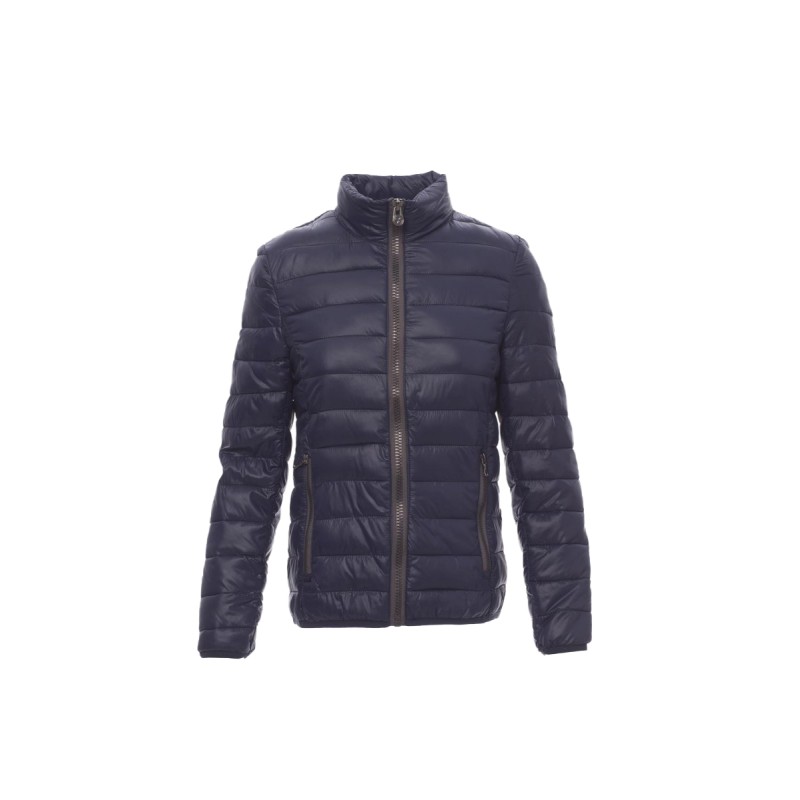 Doudoune femme coupe ergonomique, zip de 8 mm en plastique avec curseur en métal, fin liseré aux poignets et à la taille, deux poches extérieures. Intérieur : rembourré polyester effet duvet, trois poches.