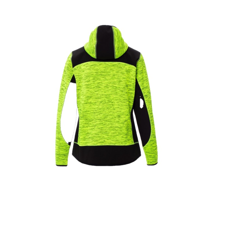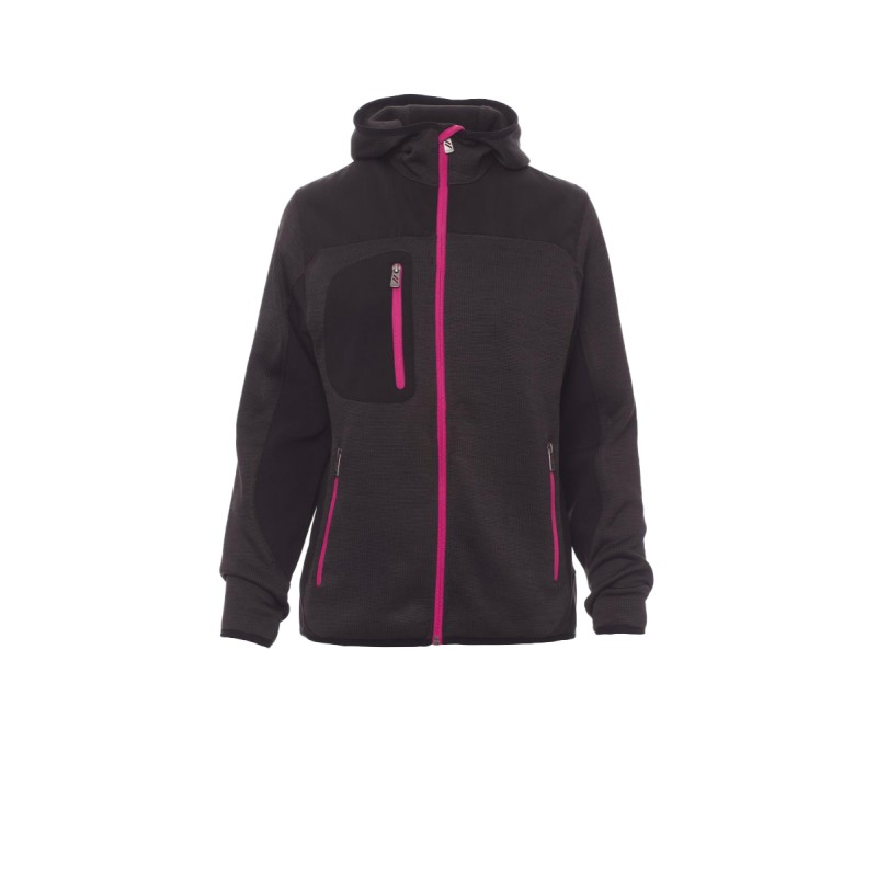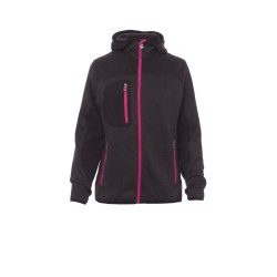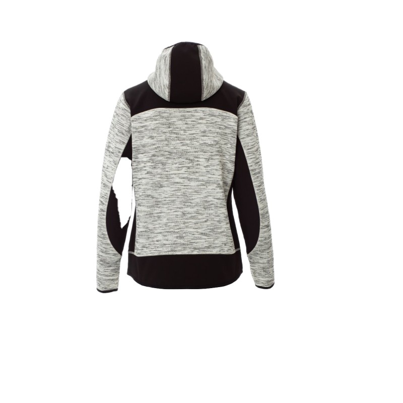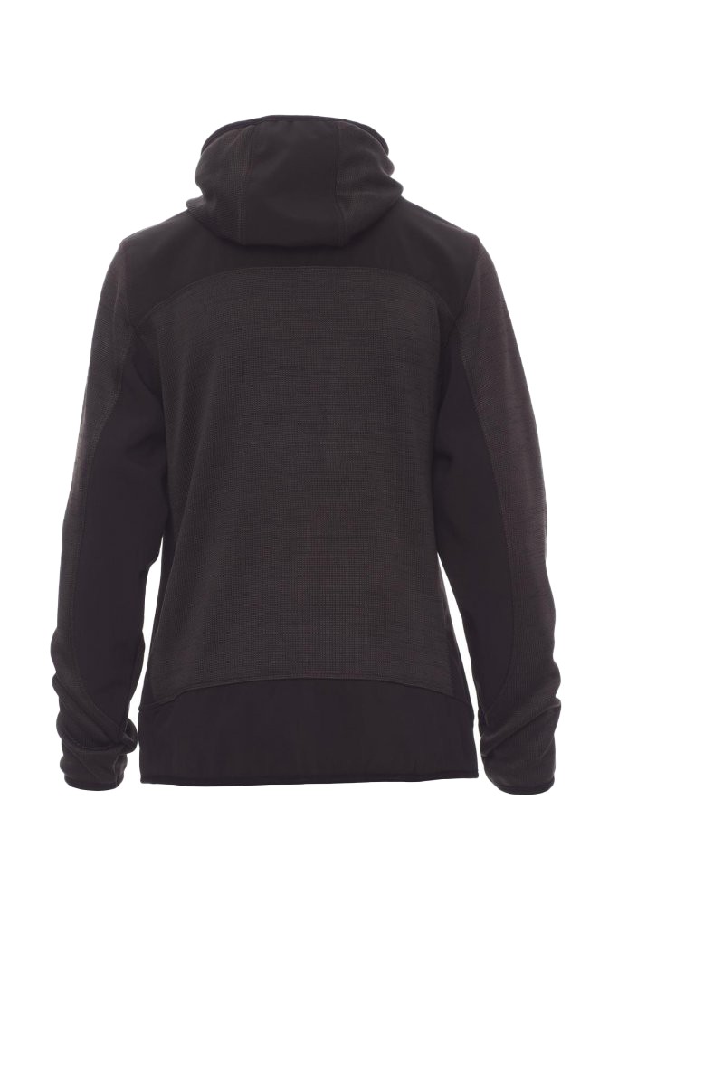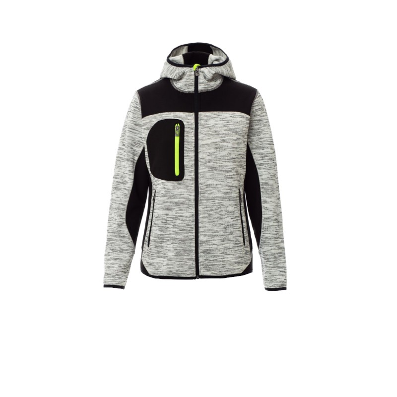 Tricot technique avec inserts en soft-shell noirs, bicolore, zip long SBS avec ruban, capuche profilée avec deux coutures, fin liseré aux poignets et à la taille, deux poches latérales avec zip, une poche poitrine.