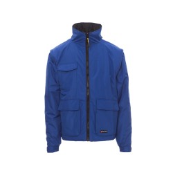 Blouson homme, à manches détachables, zip de 8 mm en plastique avec curseur en métal, capuche repliable dans le col, élastique et serre-poignets, deux grandes poches LOCK SYSTEM sur le devant, deux poches latérales, porte-smartphone sur la poitrine. Intérieur : rembourré, fermeture éclair pour faciliter les impressions et broderies.