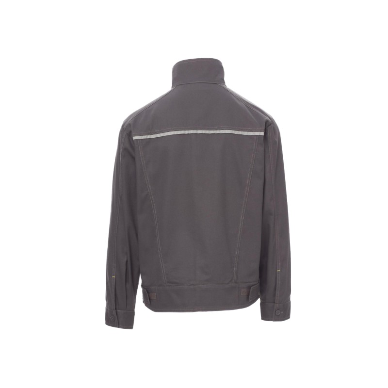 Veste non rembourrée, fermeture frontale avec boutons en plastique couverts par patte, fermeture poignets avec bouton, taille réglable par velcro. Surpiqûres en contraste, porte-smartphone, porte-badge détachable et porte-stylo dans poche poitrine avec rabat et velcro. Inserts réfléchissants sur les épaules et le dos, coupe élancée façon jeans.