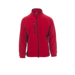 Veste polaire bicolore pour homme à zip intégral de 8 mm en plastique noir, manches raglan, coulisse réglable à la taille, élastiques serre-poignet, deux poches avec zips couverts, une poche avec zip sur le devant, col avec bordure de renfort en contraste, coutures renforcées.