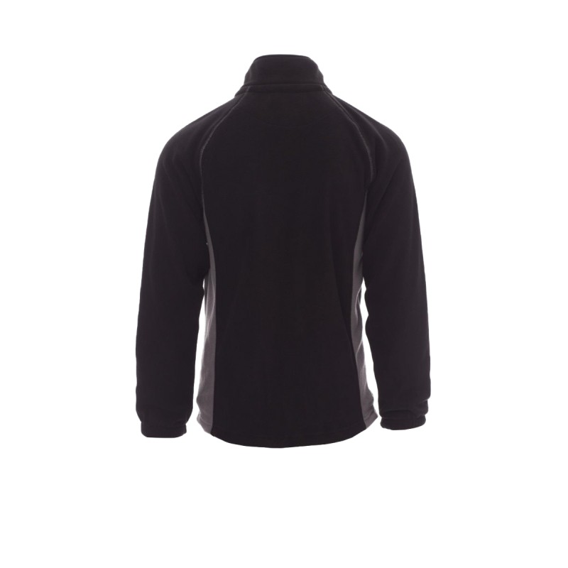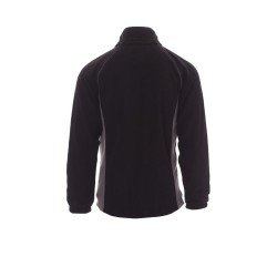 Veste polaire bicolore pour homme à zip intégral de 8 mm en plastique noir, manches raglan, coulisse réglable à la taille, élastiques serre-poignet, deux poches avec zips couverts, une poche avec zip sur le devant, col avec bordure de renfort en contraste, coutures renforcées.