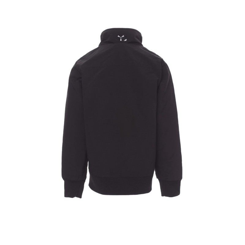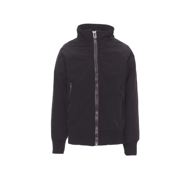 Blouson enfant, zip de 8 mm en plastique avec curseur en métal, poignets et taille en bord-côte élastique, deux poches extérieures avec zip couvert. Intérieur : rembourré, micropolaire sur le col et le dos, une poche zippée pour smartphone avec passage pour câble, zip sur la poitrine et le dos pour faciliter les impressions et broderies.