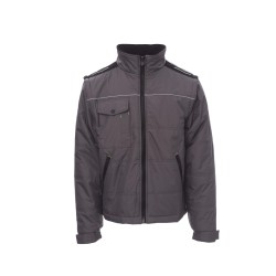 Blouson homme, à manches détachables, arrière profilé, zip de 8 mm en plastique avec curseur en métal, capuche escamotable, deux grandes poches extérieures avec zip, grande poche de poitrine pour smartphone, anneau porte-badge, passepoil réfléchissant sur la poitrine et le dos. Intérieur : rembourrage matelassé et doublure haute densité, intérieur du col en polaire, une poche.
