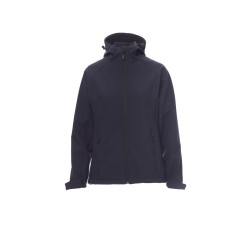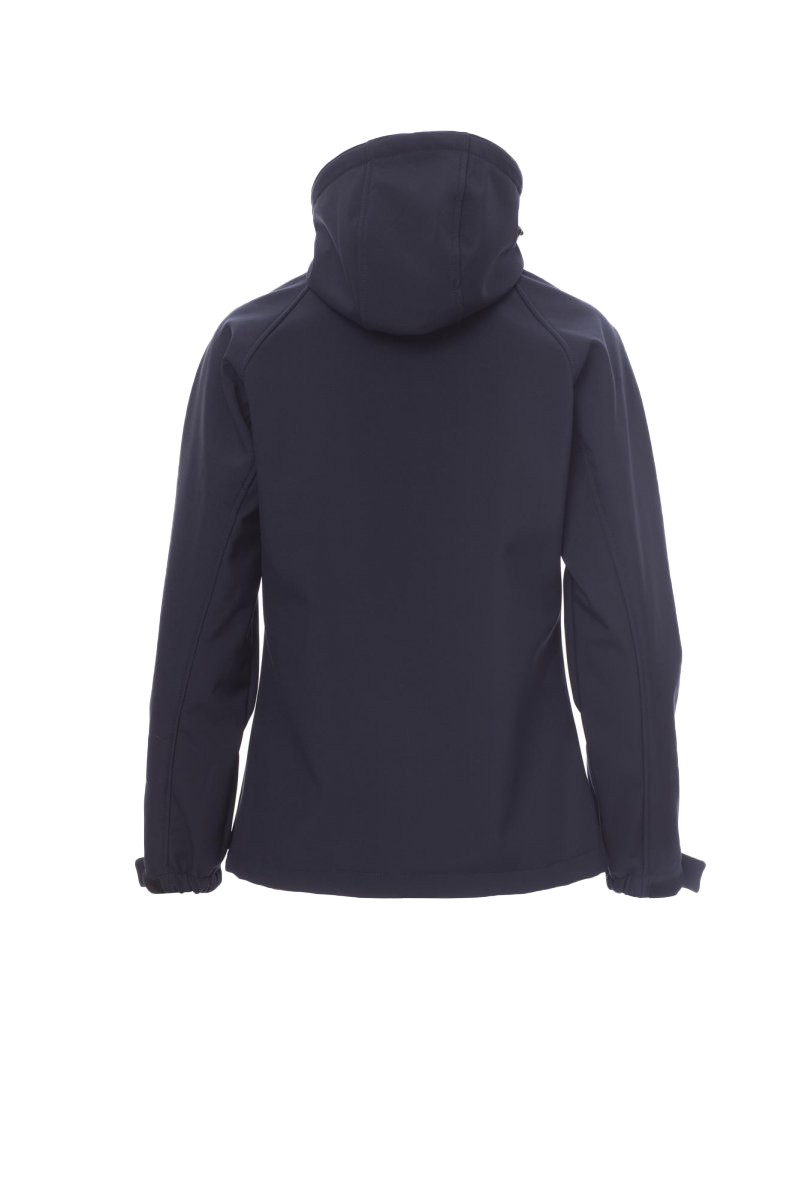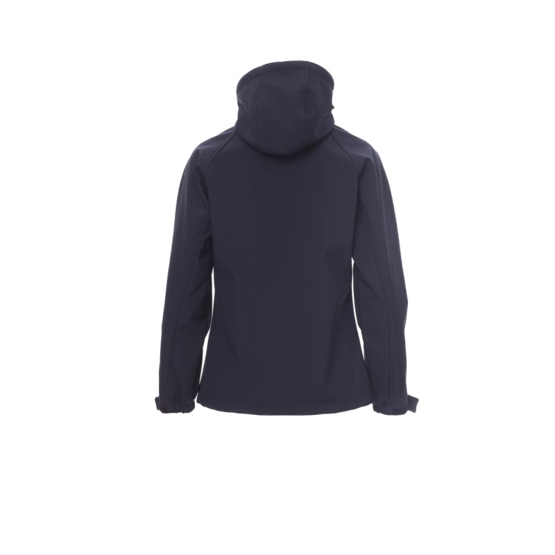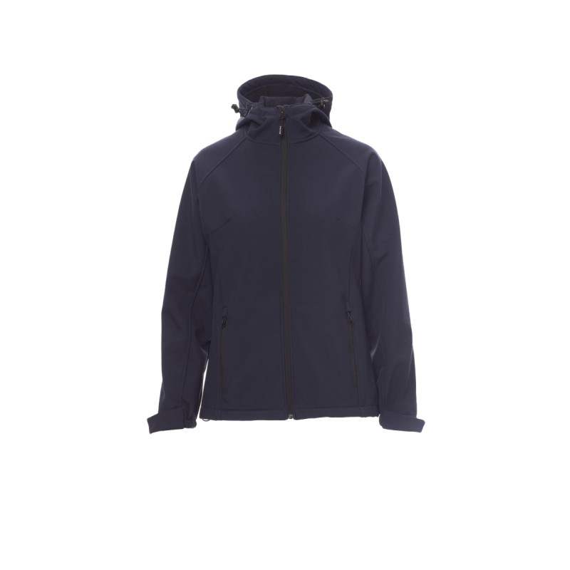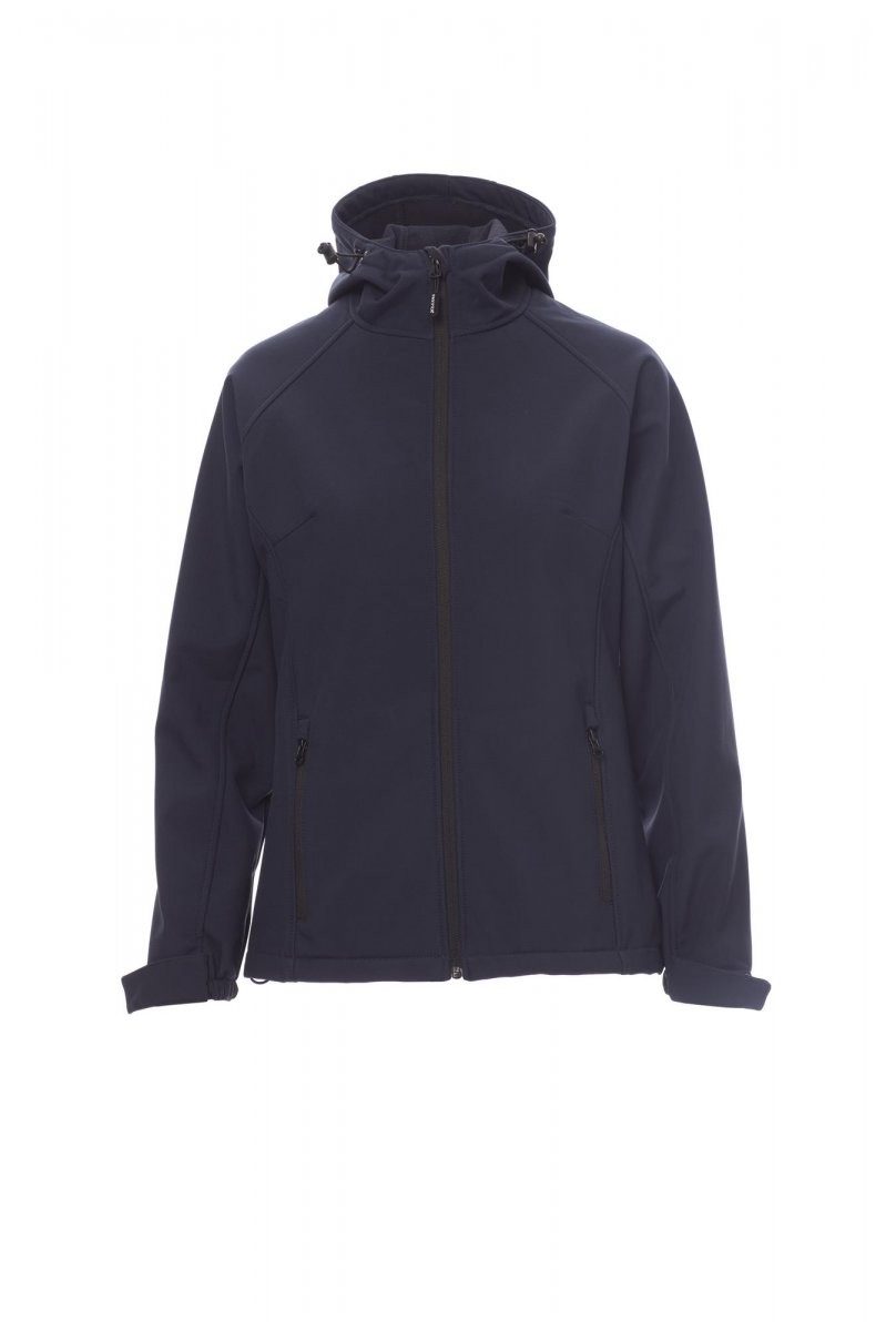 WP 8000 mm H₂O, WVT 5000 g/m² 24h. Veste ergonomique femme, manches raglan, capuche profilée à deux coutures et coulisse, fermeture éclair longue avec ruban, élastique et serre-poignet en velcro, deux poches externes zippées.