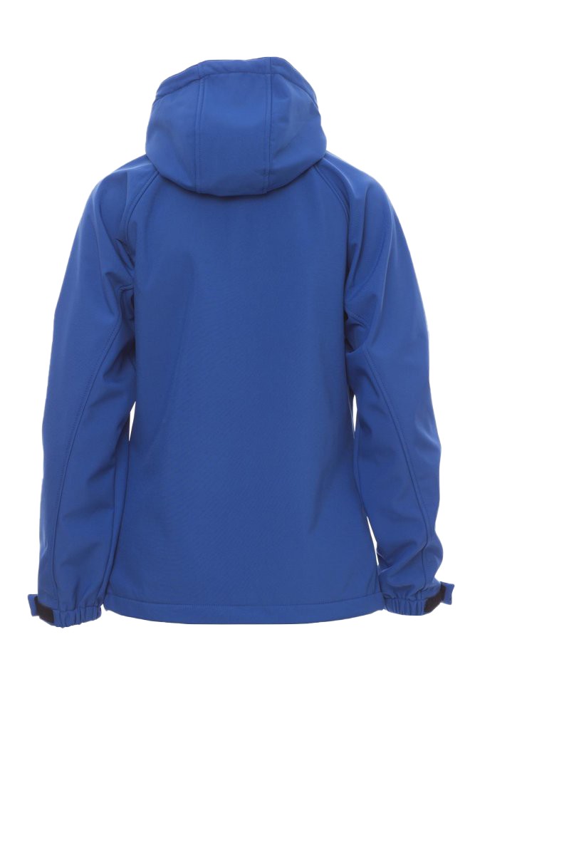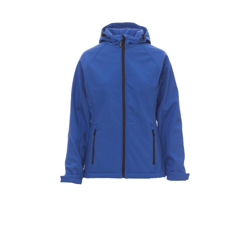WP 8000 mm H₂O, WVT 5000 g/m² 24h. Veste ergonomique femme, manches raglan, capuche profilée à deux coutures et coulisse, fermeture éclair longue avec ruban, élastique et serre-poignet en velcro, deux poches externes zippées.