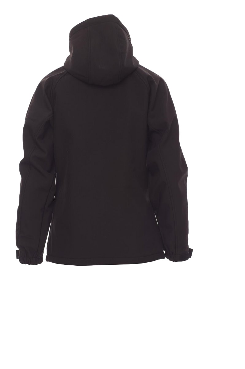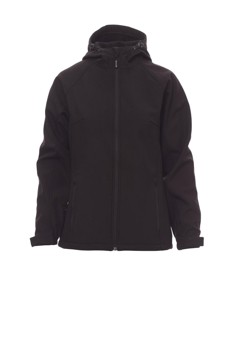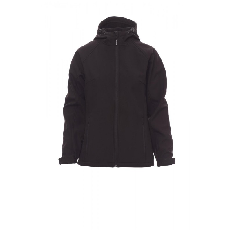 WP 8000 mm H₂O, WVT 5000 g/m² 24h. Veste ergonomique femme, manches raglan, capuche profilée à deux coutures et coulisse, fermeture éclair longue avec ruban, élastique et serre-poignet en velcro, deux poches externes zippées.