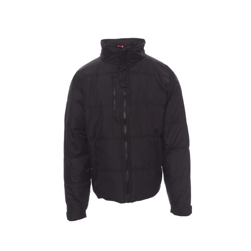 Blouson homme, zip de 8 mm en plastique avec curseur en métal, capuche repliable, poignets réglables, deux poches latérales zippées, une poche poitrine. Intérieur : rembourré et micropolaire en contraste.