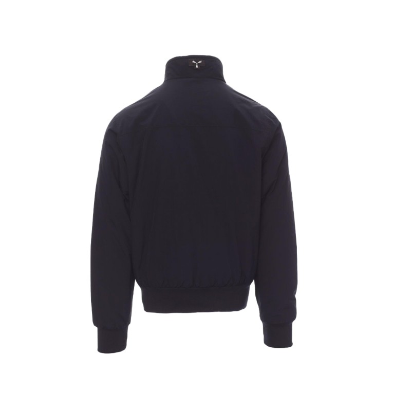 Blouson homme, zip en contraste, en plastique avec curseur en métal, poignets et taille en bord-côte élastique, deux poches extérieures avec zip couvert. Intérieur : rembourré, micropolaire sur le col et le dos, une poche zippée pour smartphone avec passage pour câble, zip sur la poitrine et le dos pour faciliter les impressions et broderies.