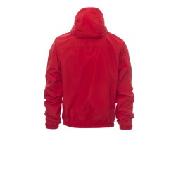 Blouson homme, zip de 8 mm en contraste, capuche profilée à deux coutures et coulisse, élastique à la taille, poignets avec élastique et serre-poignets caoutchouc de réglage, deux poches extérieures avec zip couvert. Intérieur : non rembourré, à filet, une poche zippée pour smartphone avec passage pour câble, zip sur la poitrine et le dos pour faciliter les impressions et broderies.
