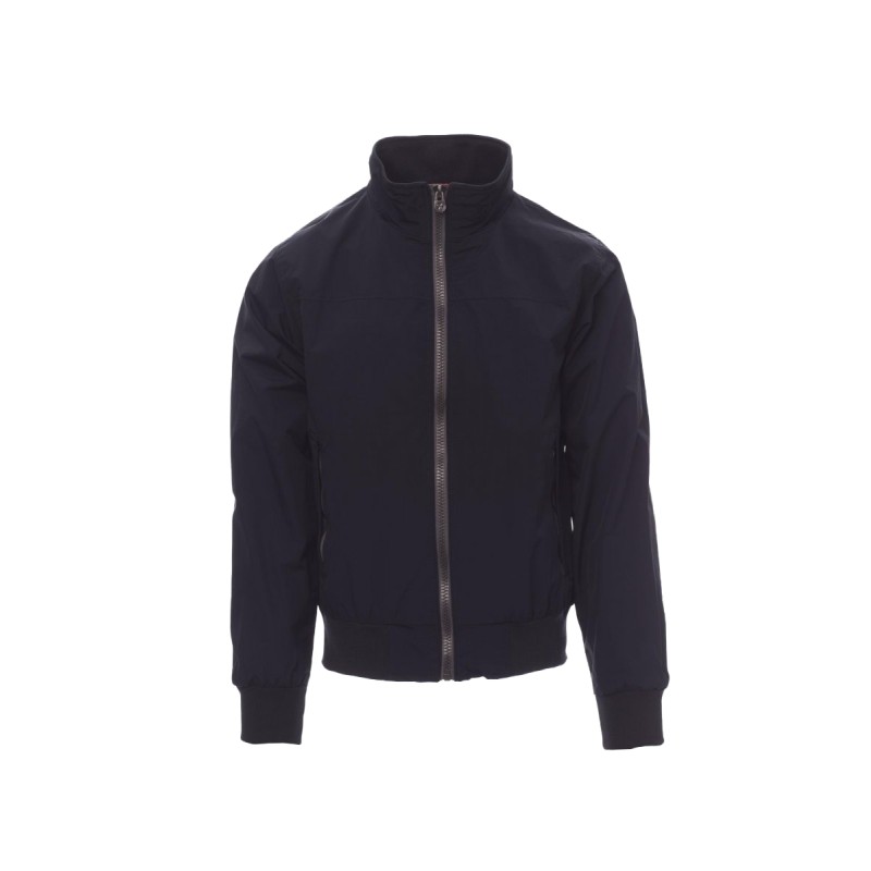 Blouson homme, zip de 8 mm en plastique avec curseur en métal, poignets et taille en bord-côte élastique, deux poches extérieures avec zip en plastique. Intérieur : non rembourré, à filet, une poche zippée pour smartphone avec passage pour câble, zip sur la poitrine et le dos pour faciliter les impressions et broderies.