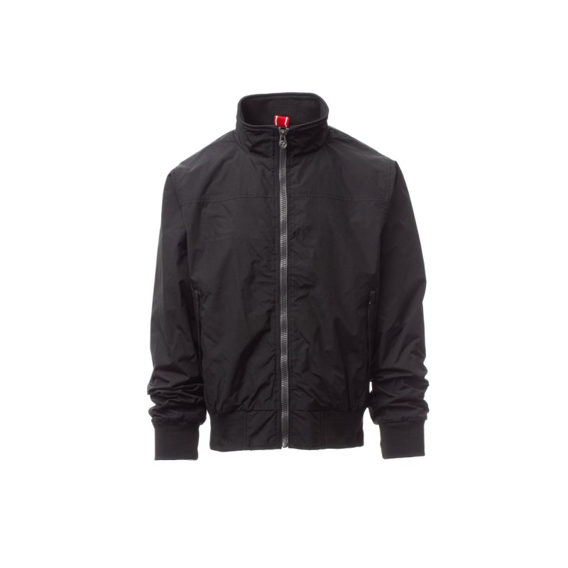 Blouson homme, zip de 8 mm en plastique avec curseur en métal, poignets et taille en bord-côte élastique, deux poches extérieures avec zip en plastique. Intérieur : non rembourré, à filet, une poche zippée pour smartphone avec passage pour câble, zip sur la poitrine et le dos pour faciliter les impressions et broderies.
