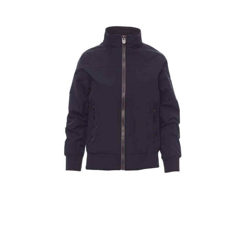 Blouson femme coupe ergonomique, zip de 8 mm en plastique avec curseur en métal, poignets et taille en bord-côte élastique, deux poches extérieures avec zip en plastique. Intérieur : non rembourré, à filet, une poche zippée pour smartphone avec passage pour câble, zip sur la poitrine et le dos pour faciliter les impressions et broderies.