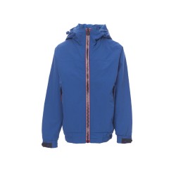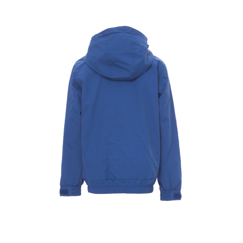 Blouson enfant, zip de 8 mm en contraste, capuche profilée à deux coutures et coulisse, élastique à la taille, poignets avec élastique et serre-poignets caoutchouc de réglage, deux poches extérieures avec zip couvert. Intérieur : non rembourré, à filet, une poche zippée pour smartphone avec passage pour câble, zip sur la poitrine et le dos pour faciliter les impressions et broderies.