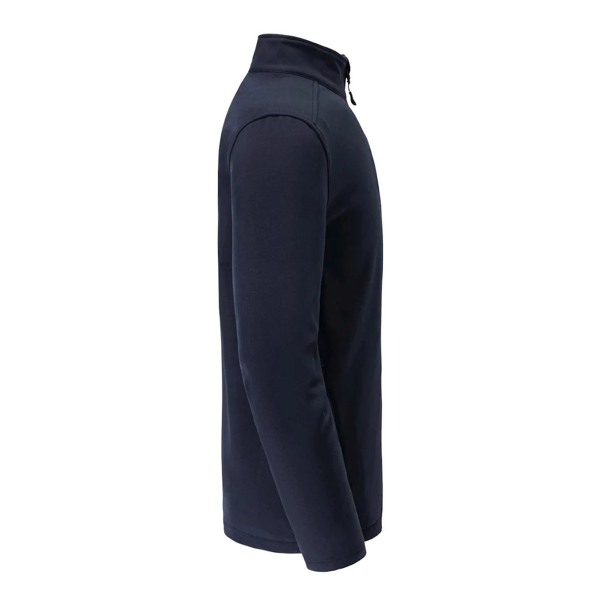 94% Polyester / 6% Elasthane. Coupe classique. Matière softshell 2 couches avec traitement déperlant (sans PFC). Col officier. Rabat tempête. Poches latérales. Doublure en micropolaire.