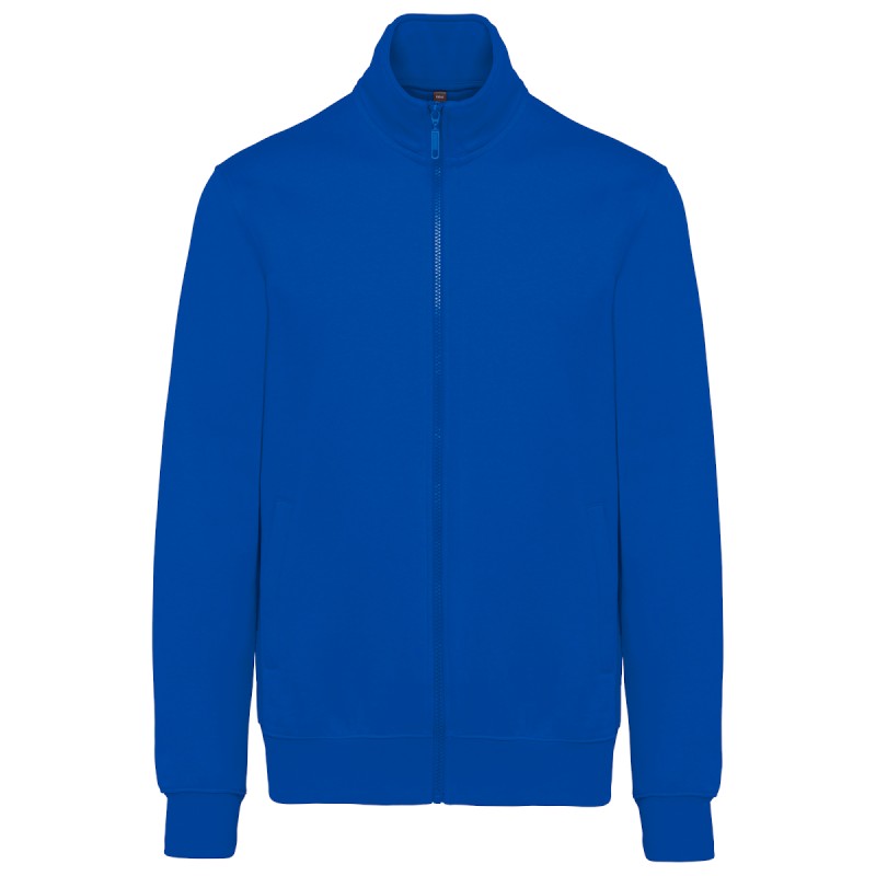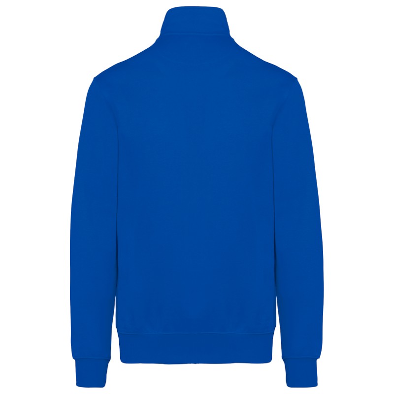 80% coton / 20% polyester. Surface extérieure 100% coton peigné. Traitement LSF (Low Shrinkage Fleece : molleton prérétréci). Molleton gratté 3 fils en coton peigné. Coupe ajustée. Manches droites. Col montant. Fermeture zippée plastique ton sur ton. 2 poches zippées et passepoilées côté. Finition demi-lune à l'encolure dos pour faciliter la personnalisation de marque à l'intérieur col. Finition bord-côte 1x1 bas de manches et de vêtement. Etiquette de marque Tear Away.