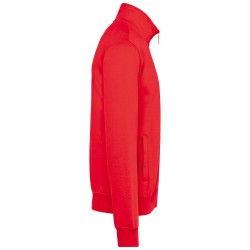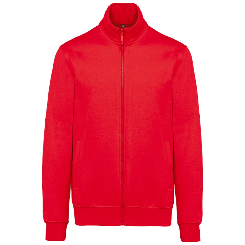 80% coton / 20% polyester. Surface extérieure 100% coton peigné. Traitement LSF (Low Shrinkage Fleece : molleton prérétréci). Molleton gratté 3 fils en coton peigné. Coupe ajustée. Manches droites. Col montant. Fermeture zippée plastique ton sur ton. 2 poches zippées et passepoilées côté. Finition demi-lune à l'encolure dos pour faciliter la personnalisation de marque à l'intérieur col. Finition bord-côte 1x1 bas de manches et de vêtement. Etiquette de marque Tear Away.