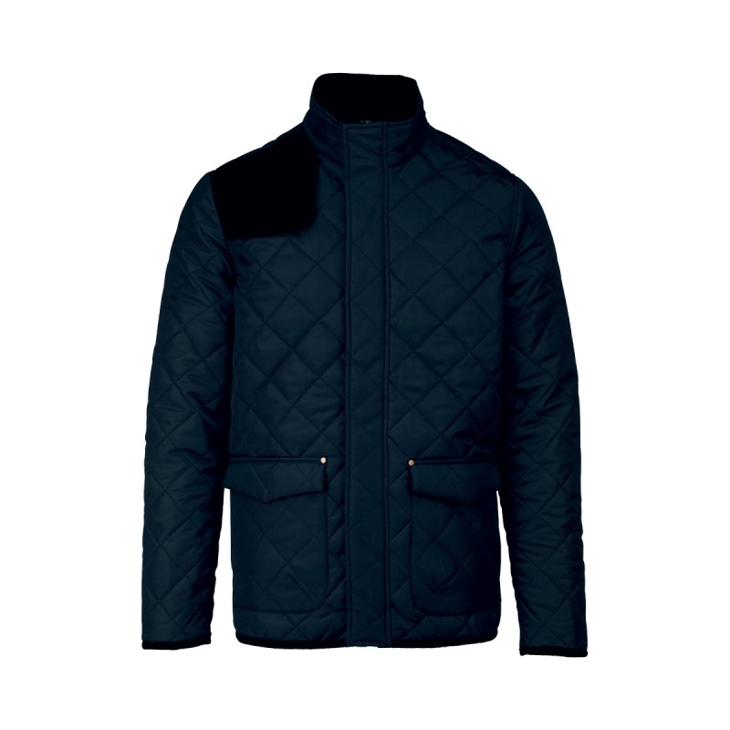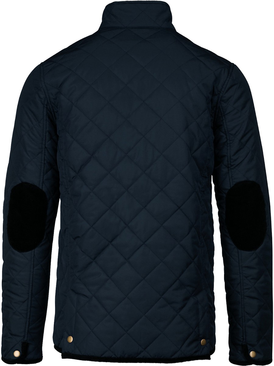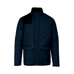 Extérieur : 100% polyester pongé. Intérieur : 100% polyester taffetas. Fermeture zippée cachée par patte pressionnée. 2 double poches devant avec rabat pressionné. 1 poche intérieure. Empiècement pressionné sur l'épaule. Finitions bas de manches et de vêtement, coudières, intérieur col et dessous du rabat de poche en velours côtelé. 2 fentes d'aisance pressionnées au bas du dos. Boutons pression au poignet.