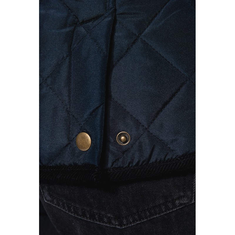 Extérieur : 100% polyester pongé. Intérieur : 100% polyester taffetas. Fermeture zippée cachée par patte pressionnée. 2 double poches devant avec rabat pressionné. 1 poche intérieure. Empiècement pressionné sur l'épaule. Finitions bas de manches et de vêtement, coudières, intérieur col et dessous du rabat de poche en velours côtelé. 2 fentes d'aisance pressionnées au bas du dos. Boutons pression au poignet.