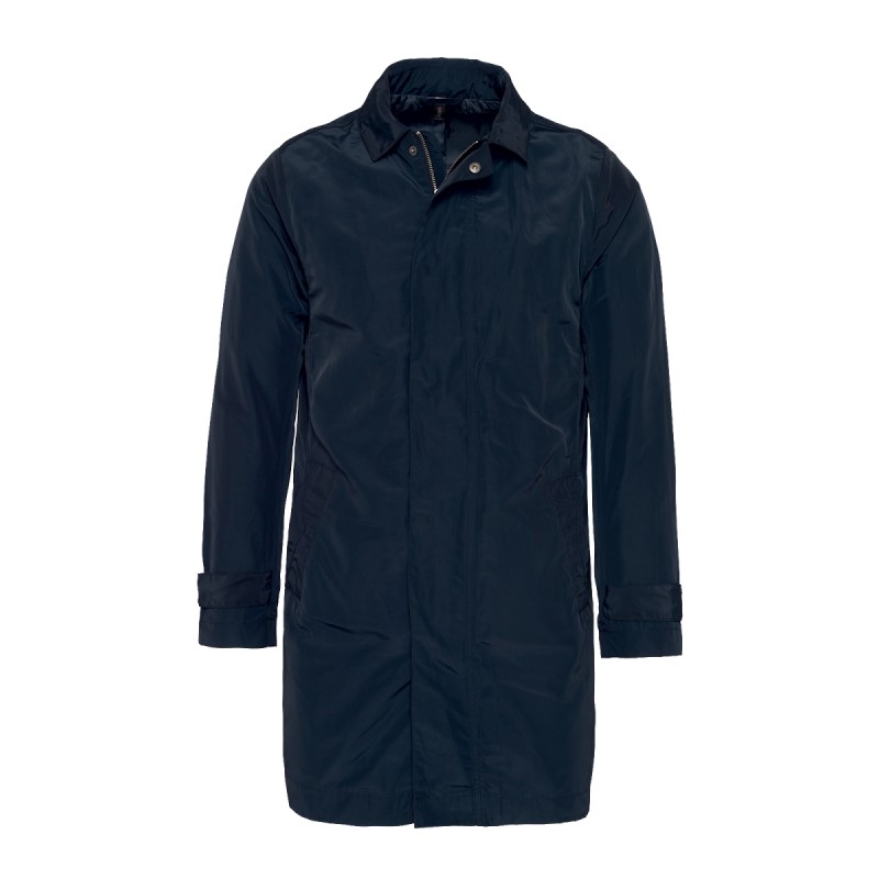 100% polyester. Tissu taffetas 320T déperlant. Col chemise. Fermeture zippée en métal cachée par patte et boutons pression. 2 poches côtés fantaisies pressionnées. Doublure sur devant entier et demi dos uniquement. 2 poches intérieures boutonnées et 1 poche pour téléphone portable. Pied de col extérieur et poches intérieures en tissu fantaisie enduit. Patte pressionnée au bas de manches. Zip invisible pour accès personnalisation.