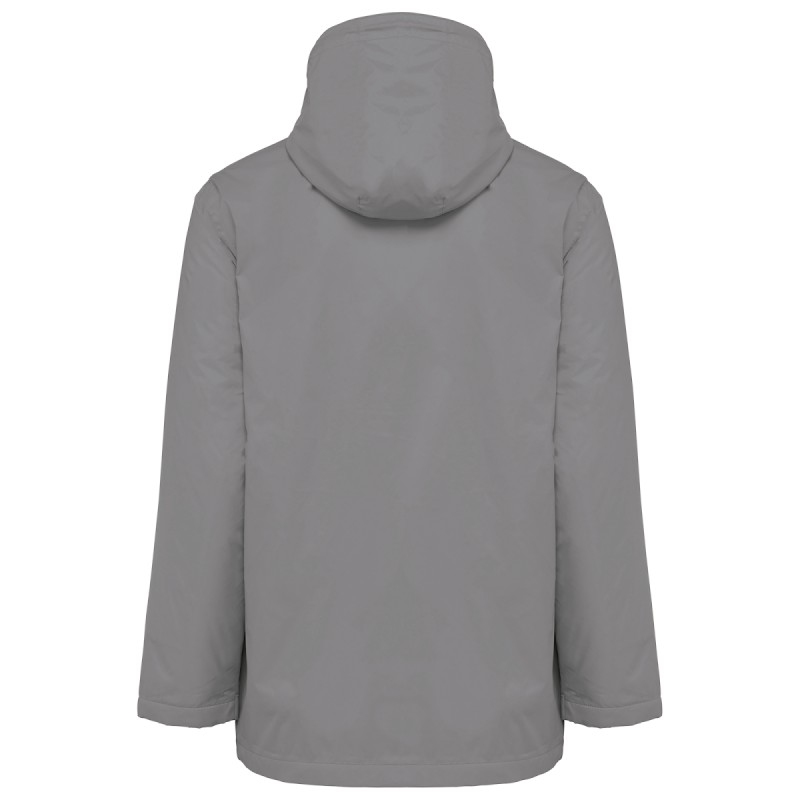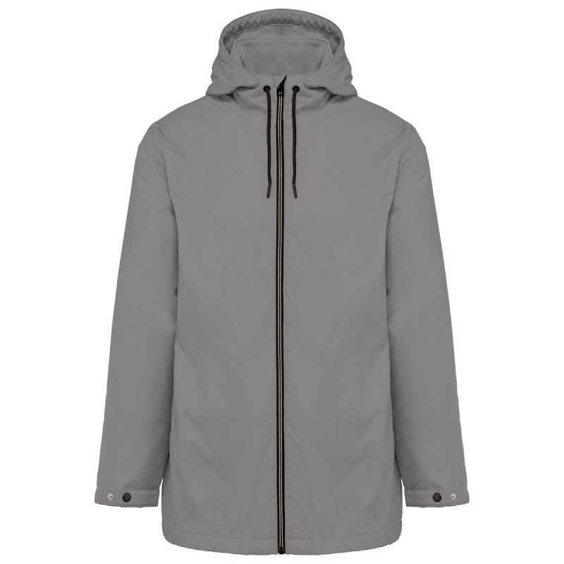 100% polyamide 210T avec enduction acrylique. Doublure 100% polyester micropolaire. Coupe droite. Doublure corps, col et capuche en micropolaire ton sur ton. Manches ouatinées et doublées en polyester. Fermetures zippées noire avec chaînette argent en nylon. 2 poches avant zippées . 1 poche intérieure fermée avec bande auto-agrippante. Capuche en 3 parties, doublée avec cordon de serrage de couleur noire. Réglage bas de manches avec 2 boutons pression. Finition demi-lune encolure dos pour faciliter la personnalisation de marque à l'intérieur. Lien d'accrochage intérieur col. Zips invisible de personnalisation côté cœur et bas de vêtement. Etiquette de marque Tear Away.