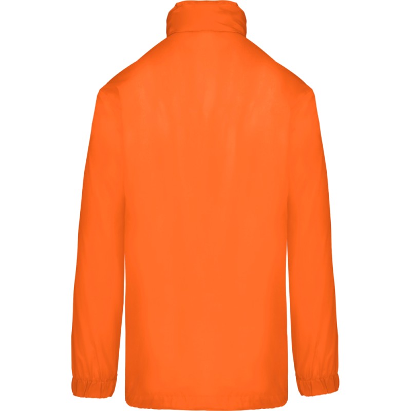 100% polyester. Capuche dans le col avec patte auto-agrippante. 2 poches zippées devant. Cordon de serrage au bas. Bas de manches élastiqués. Repliable dans sa poche sur la base du système K-WAY®. Fermeture zippée ton sur ton.
