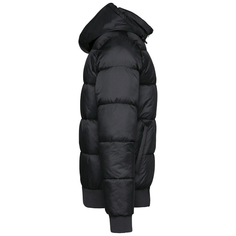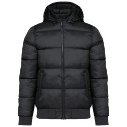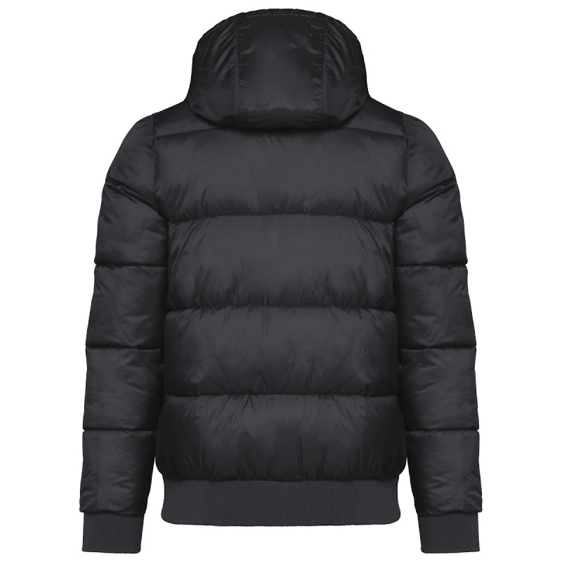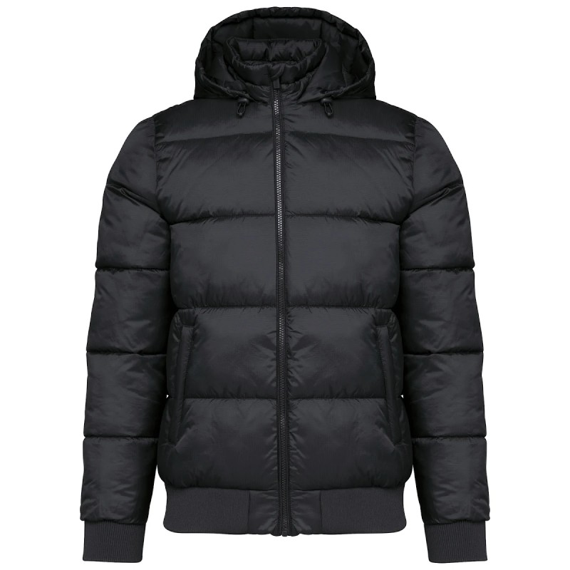 100% polyamide recyclé ripstop 380T. Tissu déperlant. Garniture intérieure 100% polyester recyclé. Doublure 100% polyamide recyclé. Coupe straight. 2 poches côtés zippées et passepoilées. 1 poche plaquée intérieure avec bande auto-agrippante. Fermeture zippée devant. Col montant avec capuche 3 parties doublée, matelassée et ajustable à l'aide d'un stoppeur. Bord-côtes au bas de manches et de vêtement. Zip invisible intérieur côté cœur et au bas du vêtement pour accès personnalisation. Garnissage injecté : le grammage peut varier selon les zones du vêtement. Le poids total est indicatif.