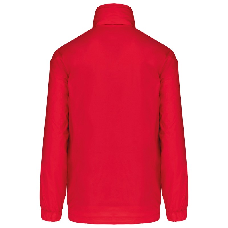100% polyamide 210 T avec enduction acrylique. Fermeture zippée. 2 poches sur le devant avec points d'arrêt contrastés. 1 poche intérieure. Doublure corps en 100% polyester : 3/4 en polytricot et 1/4 en filet. Doublure manches en 100% polyester. Cordon élastique de serrage au bas du vêtement avec stoppeurs. Capuche dans le col. Ouverture par zip intérieur pour personnalisation.
