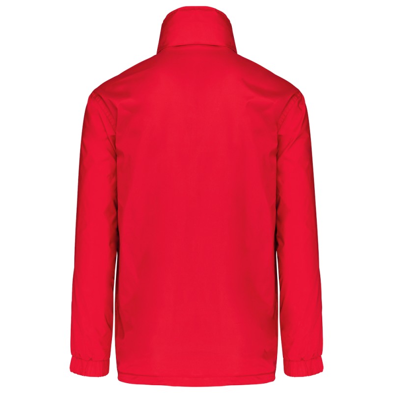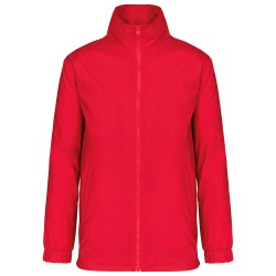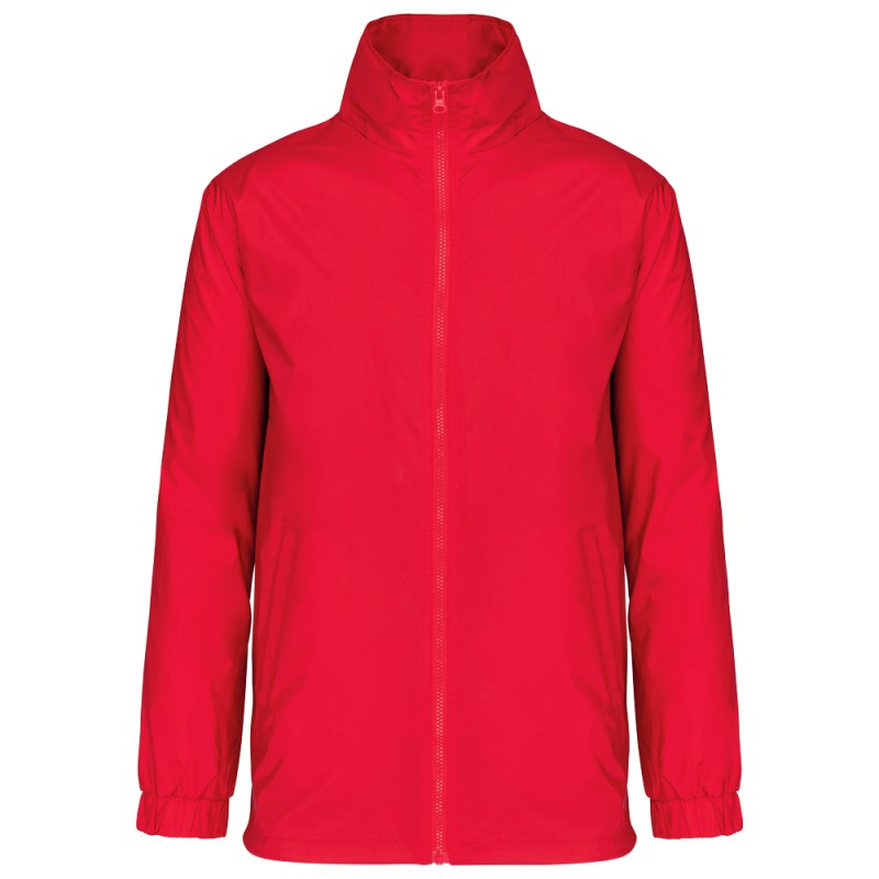 100% polyamide 210 T avec enduction acrylique. Fermeture zippée. 1 poche intérieure + 2 poches devant. Cordon élastique au bas du vêtement avec stoppeurs. Capuche dans le col avec cordon élastique. Doublure jersey gris chiné 100% polyester. Zip intérieur pour personnalisation.