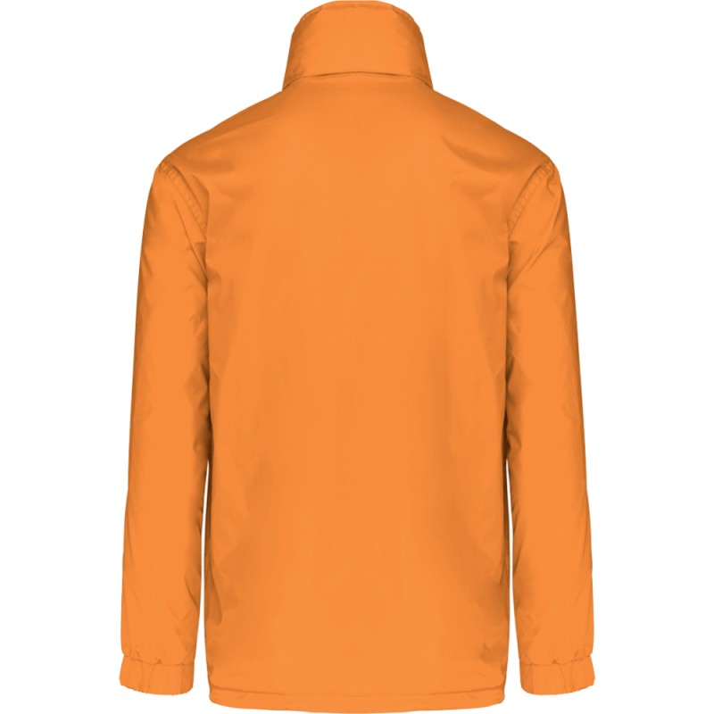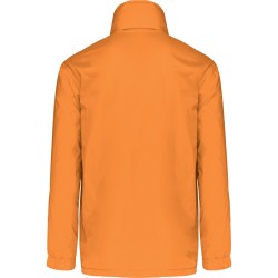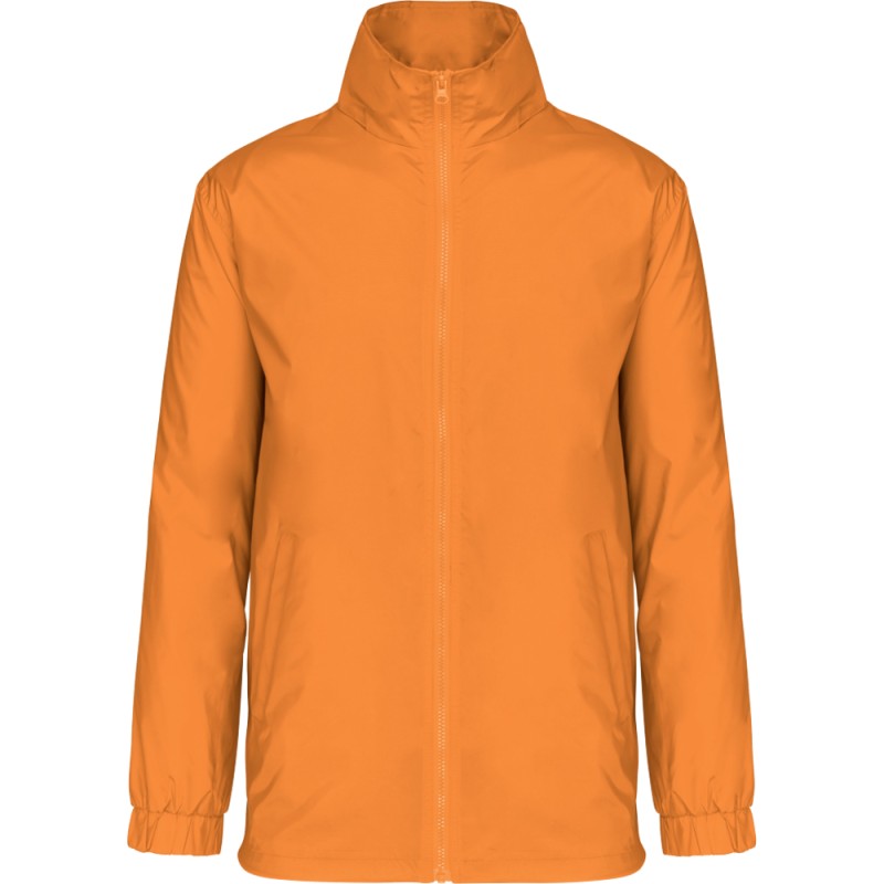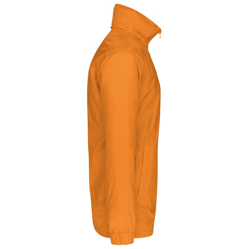 100% polyamide 210 T avec enduction acrylique. Fermeture zippée. 1 poche intérieure + 2 poches devant. Cordon élastique au bas du vêtement avec stoppeurs. Capuche dans le col avec cordon élastique. Doublure jersey gris chiné 100% polyester. Zip intérieur pour personnalisation.