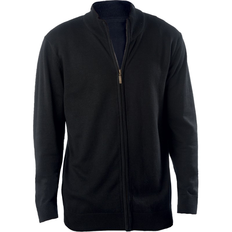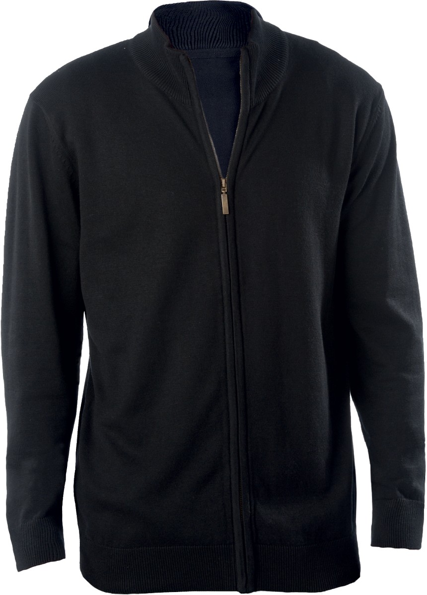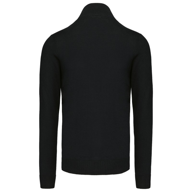 50% coton / 50% acrylique (jauge 12). Coupe ajustée. Col cheminée double épaisseur et fermeture avec zip métal fumé. Bande de propreté à l'encolure.
