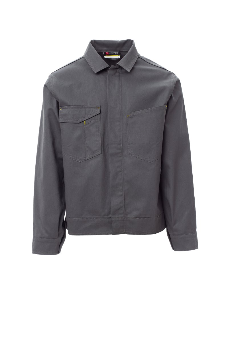 Veste non rembourrée coupe élancée façon jeans, fermeture frontale avec boutons en plastique couverts. Deux poches sur la poitrine dont une avec porte-smartphone, porte-badge, porte-stylo et rabat de fermeture à velcro. Fermeture au poignet avec bouton et taille réglable à velcro. Intérieur non doublé.