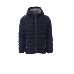 Doudoune homme à capuche, zip de 5 mm en plastique avec curseur en métal, fin liseré aux poignets et à la taille, deux poches extérieures. Intérieur : rembourré polyester effet duvet, deux poches.