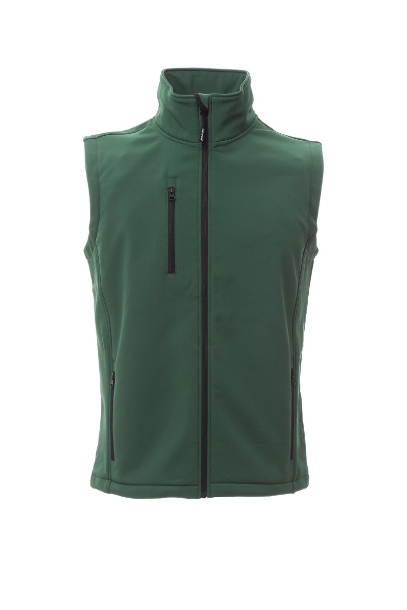Gilet ergonomique à double épaisseur, traitement water repellent, avec un zip long, deux poches latérales zippées, une poche sur la poitrine, coulisse à la taille.