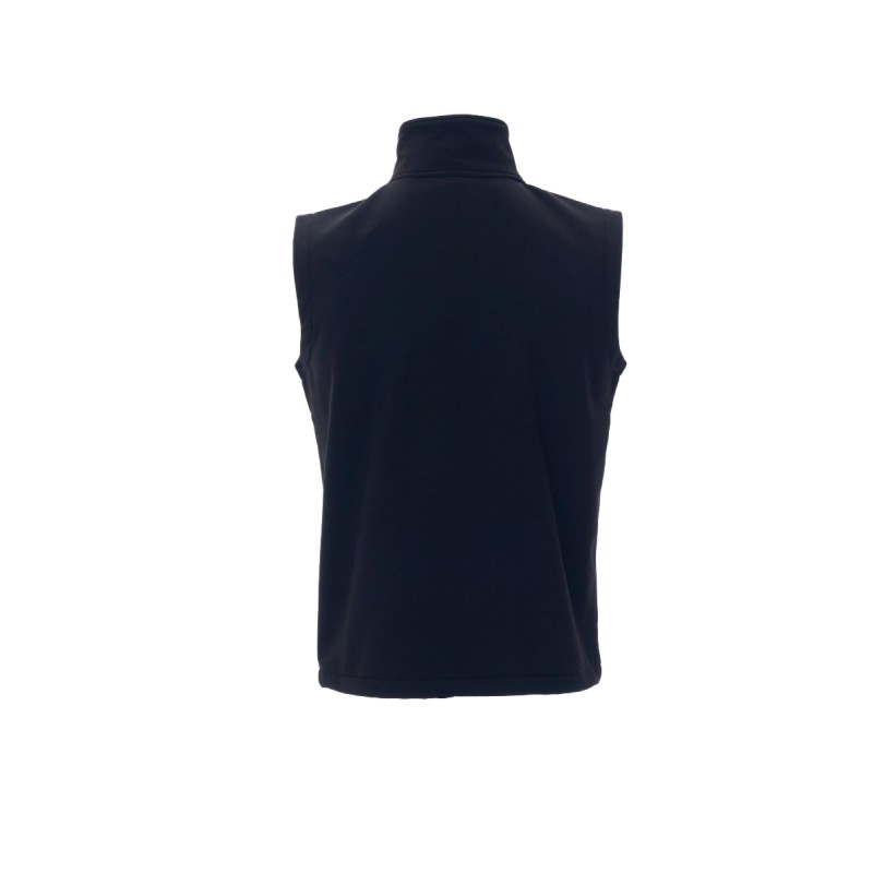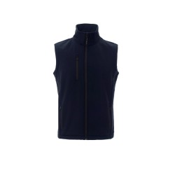Gilet ergonomique à double épaisseur, traitement water repellent, avec un zip long, deux poches latérales zippées, une poche sur la poitrine, coulisse à la taille.