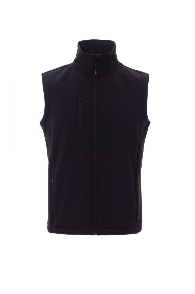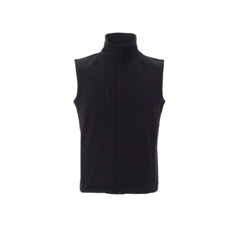 Gilet ergonomique à double épaisseur, traitement water repellent, avec un zip long, deux poches latérales zippées, une poche sur la poitrine, coulisse à la taille.