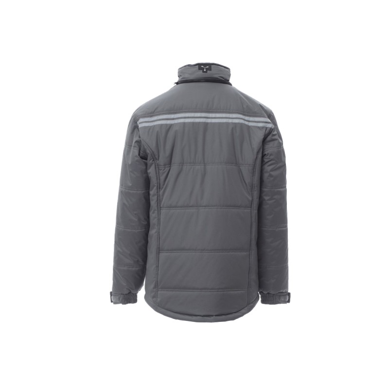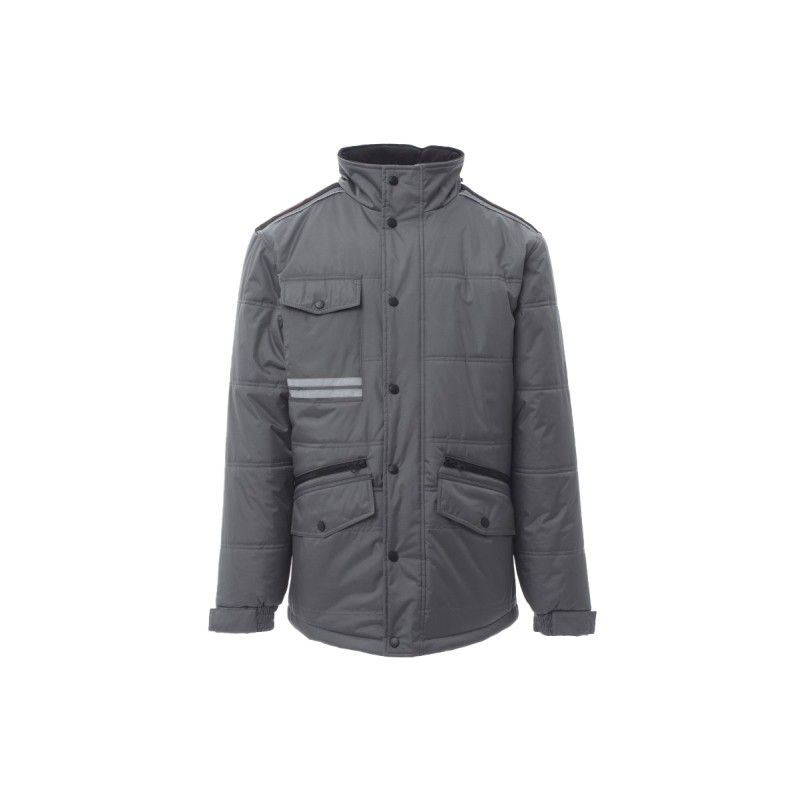 Blouson homme 3/4, zip en plastique de 8 mm avec curseur en métal, à rabat et boutons en plastique, dos profilé et capuche repliable dans le col, deux poches extérieures LOCK SYSTEM et deux poches zippées, poches obliques pour faciliter l’introduction des mains, une poche poitrine pour smartphone et anneau porte-badge, bandes réfléchissantes sur la poche et le dos. Intérieur : rembourré, polaire en contraste sur le dos et le col, une poche, zip intérieur pour faciliter les impressions et les broderies.