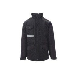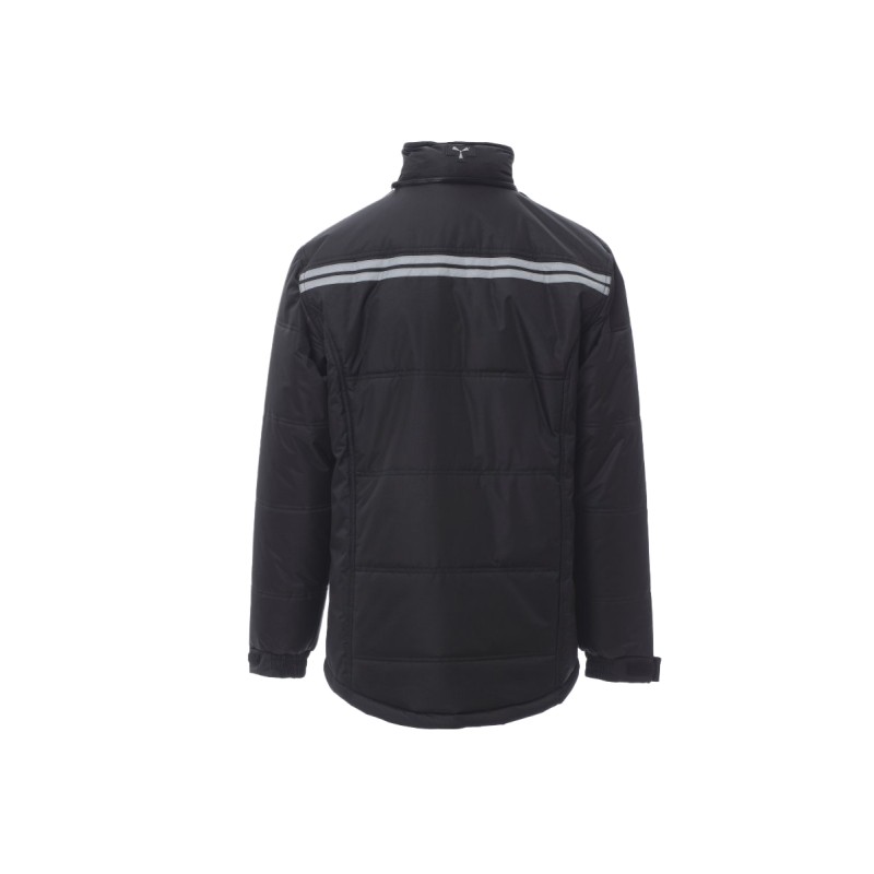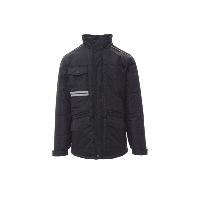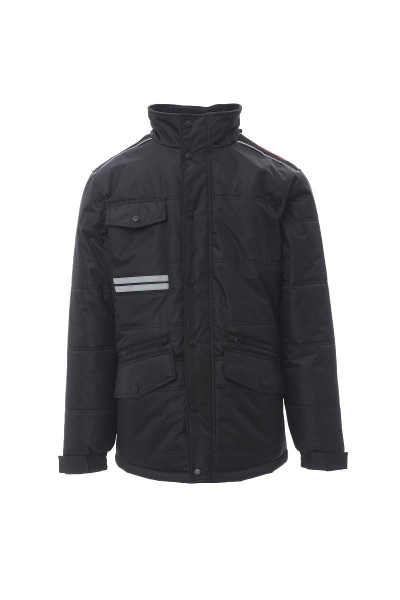 Blouson homme 3/4, zip en plastique de 8 mm avec curseur en métal, à rabat et boutons en plastique, dos profilé et capuche repliable dans le col, deux poches extérieures LOCK SYSTEM et deux poches zippées, poches obliques pour faciliter l’introduction des mains, une poche poitrine pour smartphone et anneau porte-badge, bandes réfléchissantes sur la poche et le dos. Intérieur : rembourré, polaire en contraste sur le dos et le col, une poche, zip intérieur pour faciliter les impressions et les broderies.