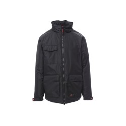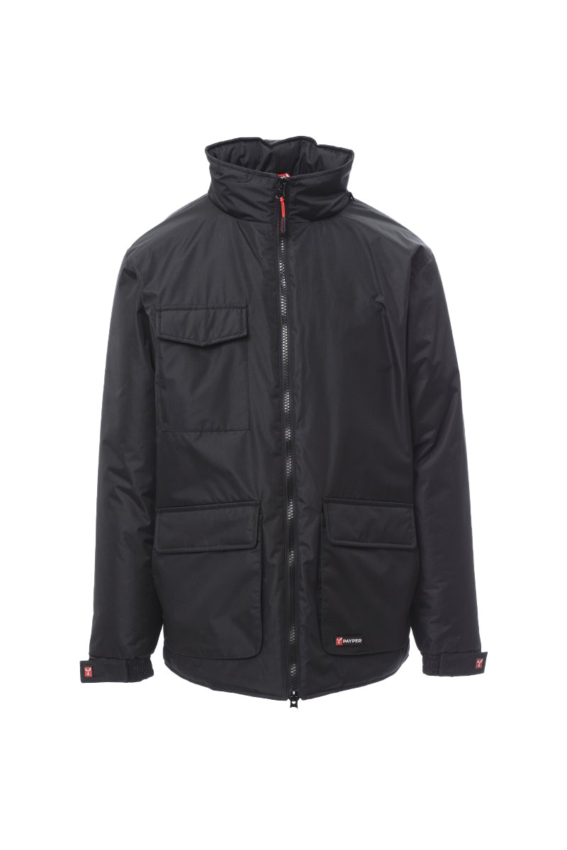 Blouson 3/4 pour homme, zip de 8 mm en plastique avec curseur en métal, capuche repliable dans le col, élastique et serre-poignets, deux grandes poches frontales LOCK SYSTEM, deux poches latérales, porte-smartphone sur la poitrine. Intérieur : rembourré, zip pour faciliter les impressions et broderies.