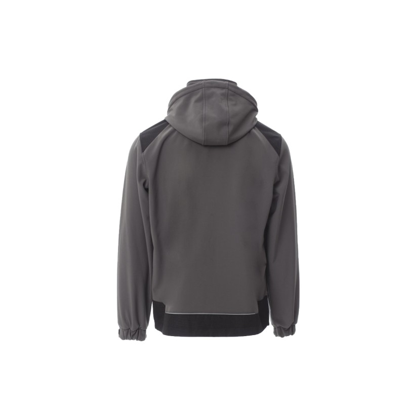 WP 8000 mm H₂O, WVT 5000 g/m² 24h. Veste pour homme coupe ergonomique, manches montées, zip intégral SBS en plastique avec curseur en métal à verrouillage semi-automatique, deux poches latérales avec fermeture éclair, une poche poitrine multifonction avec porte-badge escamotable et rabat de fermeture LOCK SYSTEM, bandes réfléchissantes 3M aux épaules, élastique et serre-poignet en velcro, capuche amovible avec coulisse en élastique réglable avec stoppeur.