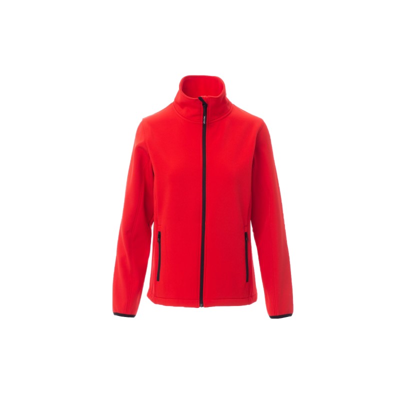Veste pour femme coupe ergonomique à deux couches avec traitement hydrofuge, manches montées, fermeture éclair longue SBS à ruban, fin liseré élastique aux poignets, 2 poches latérales à fermeture éclair.
