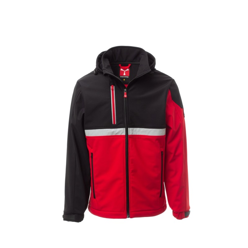 WP 8000 mm H₂O, WVT 5000 g/m² 24h. Soft-shell rembourré pour homme, fermeture par zip SBS avec curseur en métal à verrouillage semi-automatique et tirette personnalisée. Capuche amovible, avec coulisse réglable. Bande rétroréfléchissante frontale sur le torse. Poignets élastiques, réglables par velcro et poignet intérieur. Deux poches latérales avec zip et une poche poitrine fermée par zip avec détail rétroréfléchissant. Élément « life-saving » au dos, avec logo interne rétroréfléchissant, fermé par zip. Deux poches intérieures : une poche poitrine profilée avec zip côté droit et une poche porte-tablette fermée par velcro. Bas réglable avec stoppeurs personnalisés.