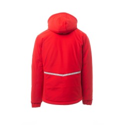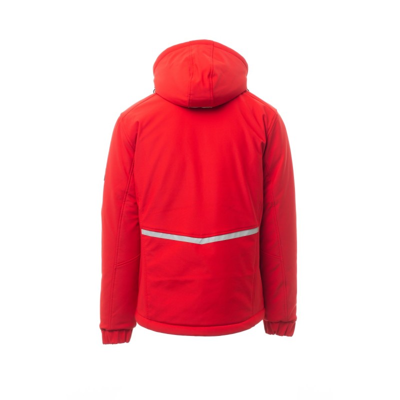 WP 8000 mm H₂O, WVT 5000 g/m² 24h. Soft-shell rembourré pour homme, fermeture par zip SBS avec curseur en métal à verrouillage semi-automatique et tirette personnalisée. Capuche amovible, avec coulisse réglable. Col intérieur avec détails latéraux en fibre polaire. Bandes rétroréfléchissantes au bas du dos et à l'arrière de la capuche. Poignets élastiques, réglables par velcro. Deux poches latérales avec zip, une poche poitrine avec zip enduit et une poche sur le bras gauche avec porte-stylos intégré, fermée par zip. Tirettes fluorescentes. Une poche passepoilée intérieure, fermée par velcro. Bas réglable avec stoppeurs personnalisés.