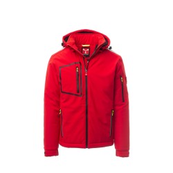 WP 8000 mm H₂O, WVT 5000 g/m² 24h. Soft-shell rembourré pour homme, fermeture par zip SBS avec curseur en métal à verrouillage semi-automatique et tirette personnalisée. Capuche amovible, avec coulisse réglable. Col intérieur avec détails latéraux en fibre polaire. Bandes rétroréfléchissantes sur les épaules, le bas du dos et l'arrière de la capuche. Poignets élastiques, réglables par velcro avec manchon intérieur. Poche thermosoudée sur la poitrine, fermée par zip enduit. Deux poches latérales, fermées par zip avec détail rétroréfléchissant. Poche sur le bras gauche avec porte-stylos intégré, fermée par zip. Tirettes fluorescentes. Deux poches intérieures : une poche poitrine profilée avec zip côté droit et une poche porte-tablette fermée par velcro. Bas réglable avec stoppeurs personnalisés.