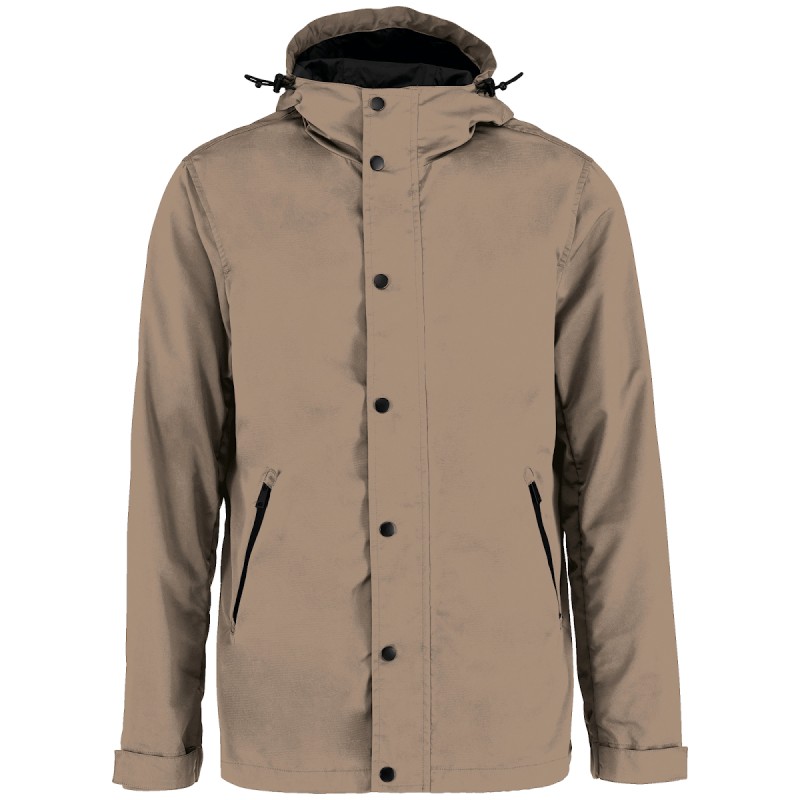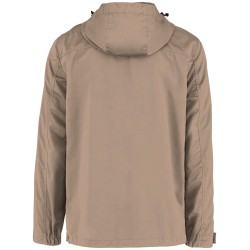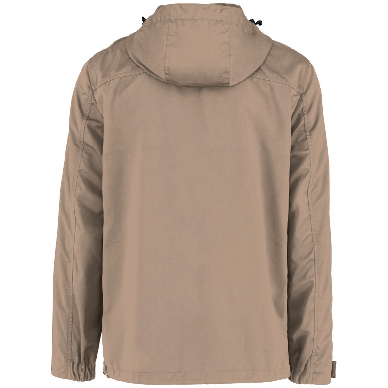 87% polyester (32% recyclé) / 13% polyamide. Boutons pression electrostatic paint et métal. Tissu déperlant. Zips en plastique et puller en métal. Poches latérales côtés à zips retournés (waterproof). Capuche panneaux, doublée en polyamide ripstop quadrillé. Bande auto-agrippante aux bas de manches + demi-élastique. Doublure intérieure en ripstop volante au dos pour faciliter la personnalisation. Finition biais à l'emmanchure, côtés vêtement et intérieur de manches. Œillets d'aération dos sous les manches. Élastique bas de vêtement, cordon de serrage avec stopper sur les côtés. Patte de boutonnage avec boutons pressions sur le milieu devant.