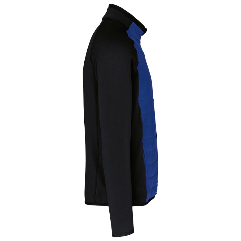 Extérieur : corps 100% polyamide ripstop, manches et dos 90% polyester / 10% élasthanne (Marl grey / Sporty navy : 100% polyester). Garniture intérieure 100% polyester. Matière ultra confortable avec traitement déperlant. 2 poches zippées devant. Fermeture zippée contrastée. Biais élastiqué au col, bas de manches et de vêtement.