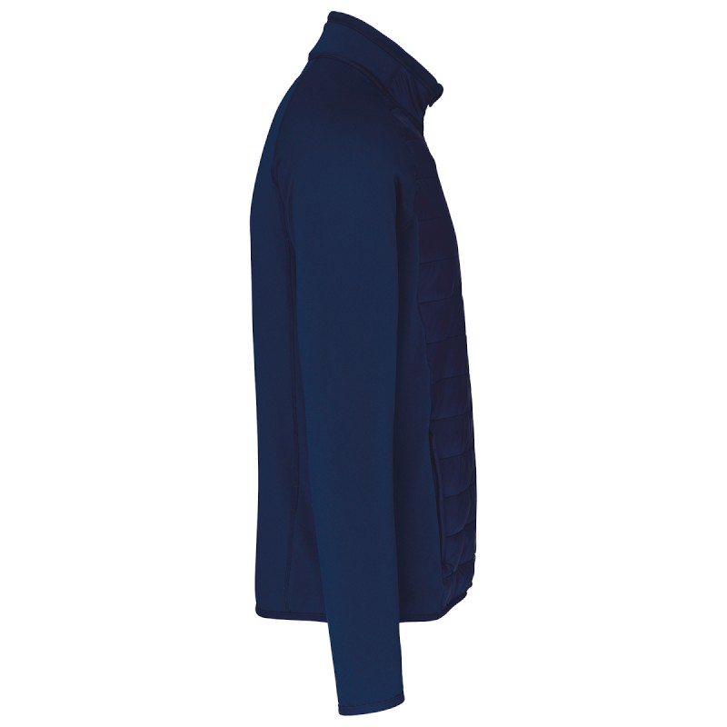 Extérieur : corps 100% polyamide ripstop, manches et dos 90% polyester / 10% élasthanne (Marl grey / Sporty navy : 100% polyester). Garniture intérieure 100% polyester. Matière ultra confortable avec traitement déperlant. 2 poches zippées devant. Fermeture zippée contrastée. Biais élastiqué au col, bas de manches et de vêtement.