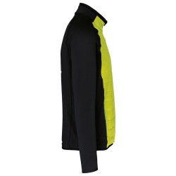 Extérieur : corps 100% polyamide ripstop, manches et dos 90% polyester / 10% élasthanne (Marl grey / Sporty navy : 100% polyester). Garniture intérieure 100% polyester. Matière ultra confortable avec traitement déperlant. 2 poches zippées devant. Fermeture zippée contrastée. Biais élastiqué au col, bas de manches et de vêtement.