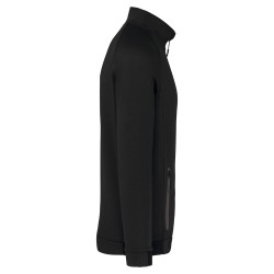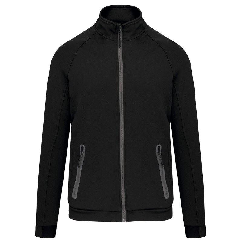 94% polyester / 6% élasthanne (79% polyester / 15% viscose / 6% élasthanne pour coloris chiné). Matière ultra confortable. Fermeture zippée. 2 poches avant zippées finition thermosoudée. Bas de manches et de vêtement resserrés avec une partie élastiquée Black sur tous les coloris et Dark Grey sur le Ash Heather (fermetures aussi). Idéal pour être porté avec le pantalon de survêtement PA1008 dans un style total Urban Apparel.